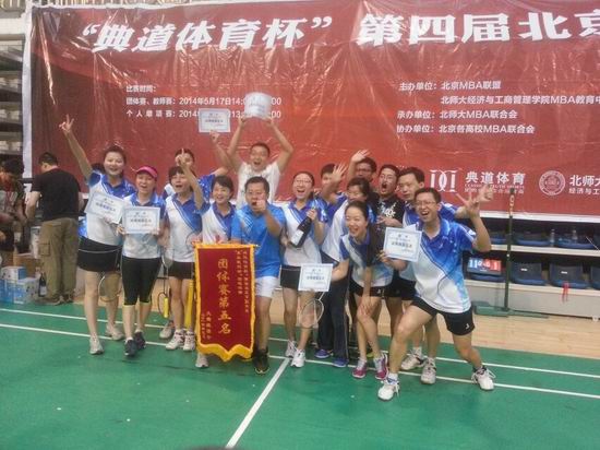 5月25日第四届北京MBA联盟“最美我羽动”羽毛球比赛圆满落幕,这是一次高校MBA羽毛球的盛会,也是社会各行业精英们竞相展示风采、相互交流的舞台!每个人都在这次盛会中收获颇丰,不但只是切磋羽毛球本届大赛,我们北航MBA羽毛球队取得团体第五名,这是大家一步步拼搏得来。从建队到比赛仅仅半年时间,主要以13级MBA为主,赢得了北航在MBA羽毛球大赛上的历史次好成绩!