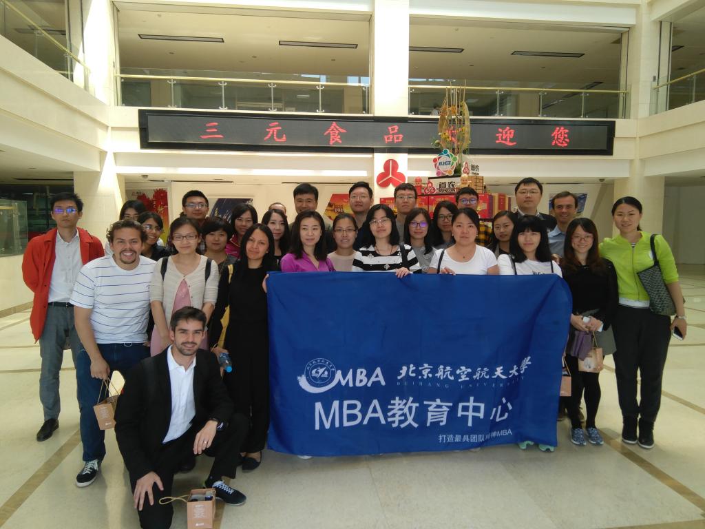 4月28日上午,北航MBA教育中心组织30余名MIP和北航MBA同学参观了位于大兴区的三元食品股份有限公司。本次参观主要包括三大环节:参观车间生产线、走进牛奶体验馆、观看企业宣传片以及产品体验。