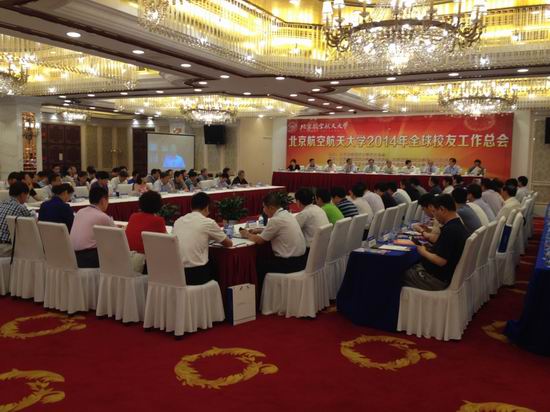 次日上午8点30分,北航2014年全球校友工作会在王朝酒店宴会厅准时开始,全场座无虚席,来自全球150多位北航校友齐聚于此。首先,北航校友总会会长、北航校长怀进鹏院士用VCR的形式祝贺大会的召开,并发表了热情洋溢的致辞。北航温州校友会会长戴元松师兄和北航温州研究院蔡茂林院长分别代表大会举办地致欢迎辞。然后,大会进入正式议程,北航校友总会秘书长王有洪师兄做年度工作报告,各地区和专业校友会代表进行现场交流。