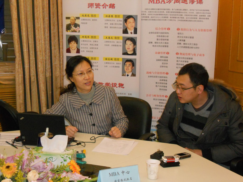 基于“以人为本”、从考生利益出发的办学思路,为全面做好2011年MBA现场确认工作,在总结去年成功举办“北航2010MBA现场确认办公室”的成功经验基础上,经深入调研讨论,北航MBA教育中心继续在研究生报考确认现场期间推出这一人性化措施。10日上午,中心主任苏文平老师及中心负责招生宣传老师们悉数出现在现场确认办公室,为考生提供北航MBA招生政策咨询、MBA提前面试报名、SMBA报名、宣传礼品派发及休息休整等温馨服务。