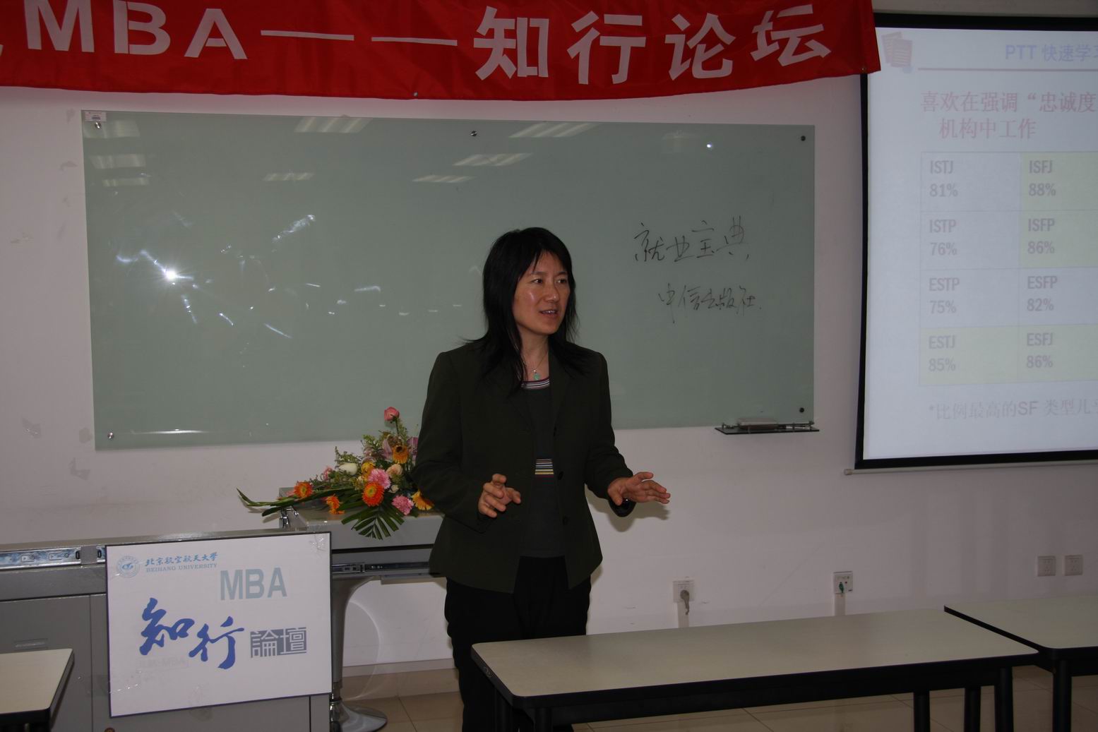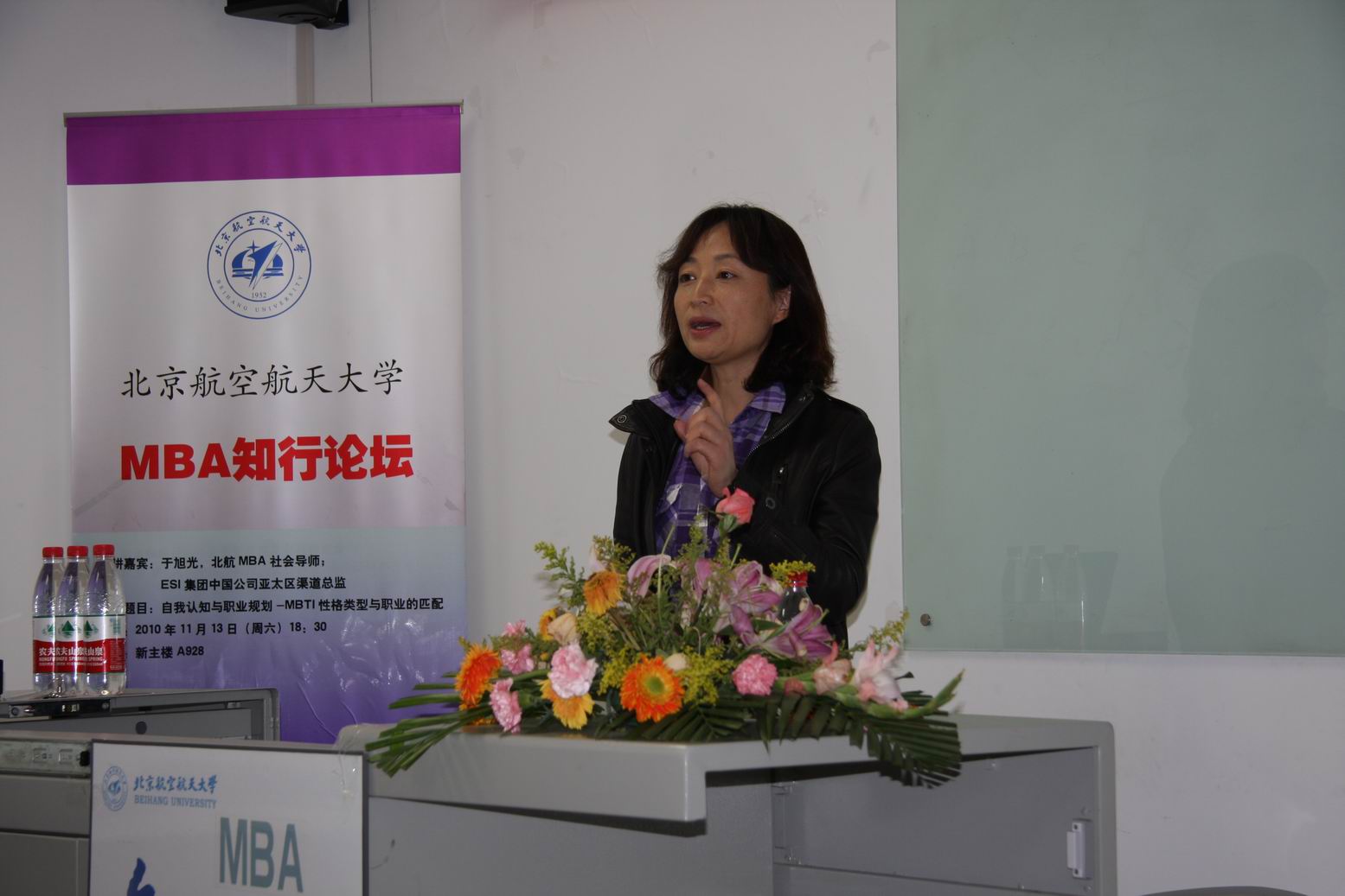 11月13日晚,北航MBA知行论坛邀请了我校MBA社会导师、ESI集团中国公司亚太区渠道总监、清华大学博士于旭光女士作主题为MBTI性格类型与职业发展的讲座。北航MBA教育中心主任苏文平、北航MBA教育中心张新华以及北航MBA在校生参加了本次讲座。