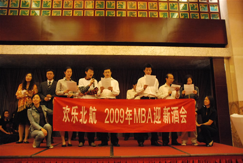 北航同学联谊:新老MBA学员发表感言,并自演了一幕精彩的迎新演出。