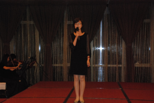 后弈忙射日,嫦娥偷奔月,月老不曾老,自古情难了,爱情是古往今来永恒的主题。09083班的牟小菲同学首先为大家带来了一段诠释爱情的热舞。在激情四射的舞蹈之后,08级同学陈锋明,为大家演唱了一首缠绵的情歌《十年》。