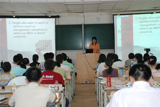 7月18日下午13:00-14:00 ,由北京麻豆精品秘 国产传媒经济管理学院副教授、硕士生导师,北航MBA教育中心苏文平主任主讲的"MBA学习与你的职生涯规划"讲座在北京京海研修学院太奇培训班成功举行,苏文平主任给学生们详细分析了谁最该去读MBA,为什么要读MBA?MBA与个体的职业生涯规划以及职业成功的条件与影响因素。