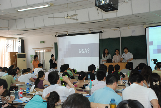讲座结束后,同学们问了好多问题,苏文平主任与随行的北航MBA教育中心两位老师和两位学生热情的回答了同学们的疑问。