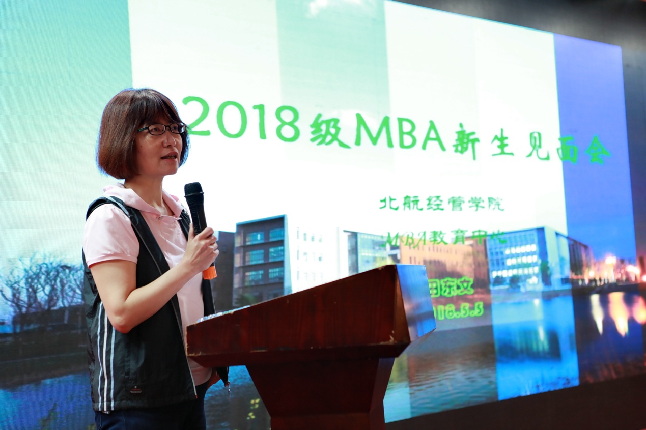 见面会上,经济管理学院副院长秦中峰首先表达了对各位新同学圆梦北航的祝贺,并通过大数据分析,从学生的客观指标、联考及综合成绩、工作单位及行业这三个方面,对本届学生的情况进行了对比分析,最后强调了学校的规章制度,并送上了关怀与期许,希望大家都能够愉快、顺利的完成学业。之后,MBA教育中心主任田东文为新生们深度解析了培养方案中的学分要求、课程设置和论文检测,并强调MBA是一项实践性极强的教育项目,要通过平衡理论与实践来提升自身的实力,也预祝大家能够收获知识,收获幸福。