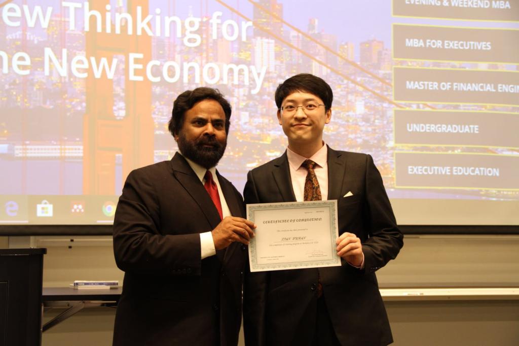 我们的第一站是美国常青藤名校– 加州大学伯克利分校,在这里我们聆听了由Solomon N. Darwin教授讲解的“开放式创新”课程。在课堂上,教授与我们多次互动问答,拉进了与学生们之间的距离。并且使用简单幽默的英语,深入浅出的介绍了关于“智慧乡村”的研究报告,并与我们分享了此项研究在印度的实际践行成果。下午Solomon教授的博士生Sea Matilda Bez结合商业案例讲解了目前的新兴理念—竞合关系。她首先讲解了竞争合作的要义,提出竞合关系的前提条件不是简单的互利共赢关系,如果与竞争对手合作在不考虑整个市场环境因素的条件下,则一方所得必然等于另一方所失。因而此理论在实践应用过程中必须慎之又慎,把握好适用的前提条件。